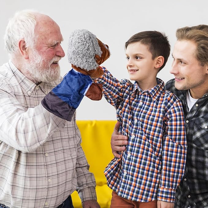 1 Pcs Family Hand Puppets 12 Inch Grandparents Mom Dad Brother Sister Plush Hand Puppet Toys Role-Play Toy Puppets for Kids Storytelling Imaginative Pretend Play Teaching Preschool(Black Grandfather)