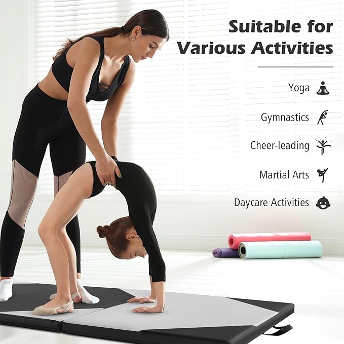 - [Multipurpose Application]: The folding mat isn’t just for tumbling; it’s versatile for an array of activities such as yoga, pilates, martial arts, and more. Its shock-absorbing properties also make it an excellent choice for playtime for kids, safeguarding against bumps and bruises.