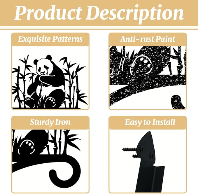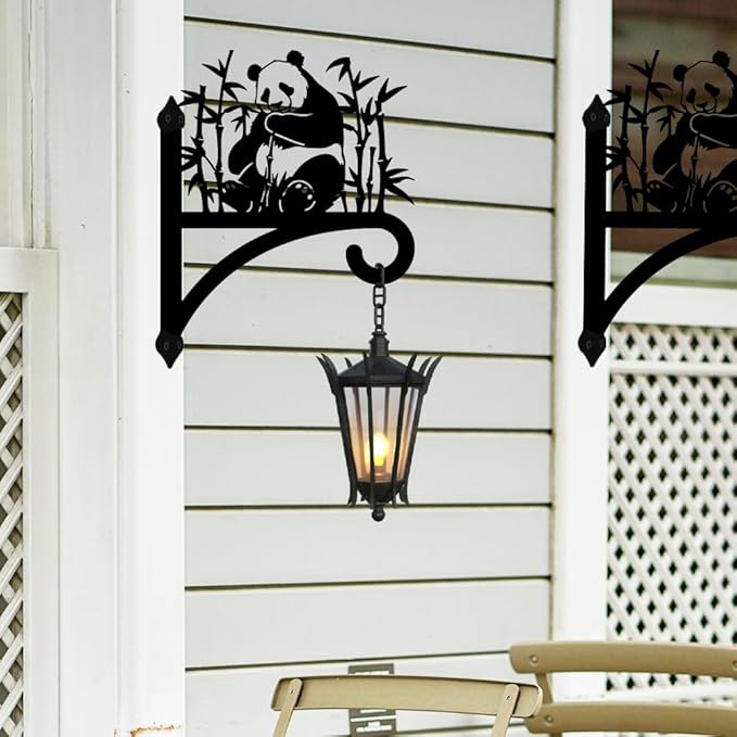 Peacoblue Iron Plant Hangers Holder for Outdoor Indoor Hanging Plants Flower Fern Pots Lantern Bird Feeder Wind Chimes, 12”x14” Weather Resistant Metal Wall Bracket Hooks for Porch Garden House(Panda)