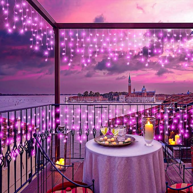 33ft Icicle Lights for Outside, Pink Christmas Lights Outdoor Waterproof for House, 400 LED Twinkle Light with 75 Drops Clear Wire Short Curtain Lights for Room Home Wall Indoor Decorations