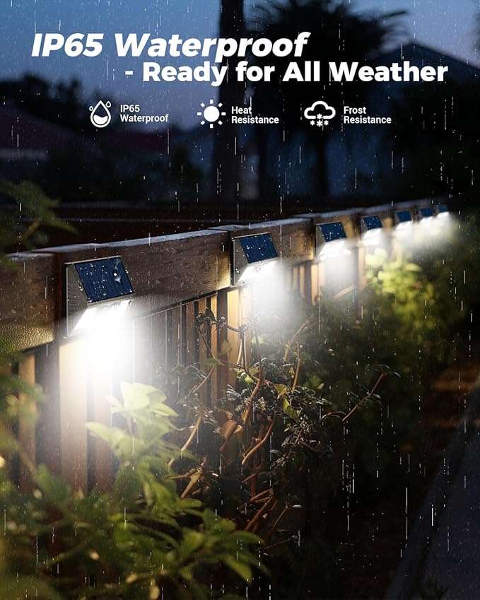 - Durable IP65 Waterproof-Built to Last in Any Weather: This small but powerful fence post solar lights boasts IP65 waterproof technology, making it resistant to rain, snow, and extreme temperatures. Its durable, weatherproof, and heatproof plastic construction ensures long-lasting performance, even in harsh outdoor conditions