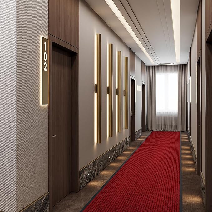 - 【High Quality Stain Resistant Runner Rug】The wine red door mats are made of high quality polyester and rubber. The groove design increase friction, easy to scrape sand off the soles. Effectively absorb oil without splashing. It is a great choice for trapping dirt & moisture from shoes & boots in the toughest applications; Protect your floors from snow, salt, rain and other outdoor debris.