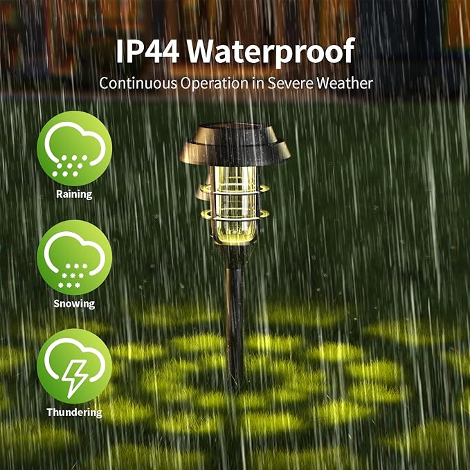 - WATERPROOF SHELL: The shell of the solar outdoor lights is made of artificially poured waterproof glue, and you don’t need to worry about the impact of rain, snow or bad weather on the solar outdoor light
