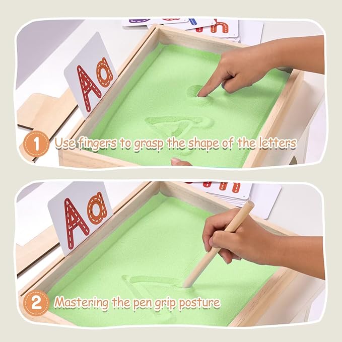 - EARLY WRITING PRACTICE - Child could move the sand with their finger as they practice their letters, offering tactile handwriting practice, unlike ordinary pencils, there is a rich tactile and fun way to write in the sand, used to train hand muscles and form memories until they master the correct letter structure