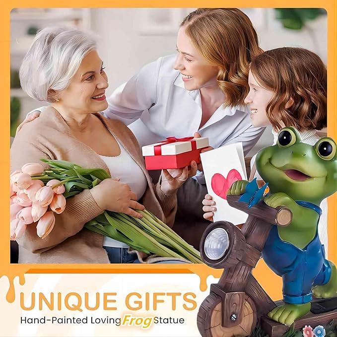 - 【𝐁𝐄𝐒𝐓 𝐏𝐑𝐄𝐒𝐄𝐍𝐓】Better gift, better life. This solar garden frog decor brings a big and wonderful surprise to anyone who loves unique and charming outdoor garden ornament. Therefore, it is a best gift choice for birthdays, Thanksgiving Day, Easter, Mother's Day, Father's Day, celebrations , or any anniversary!