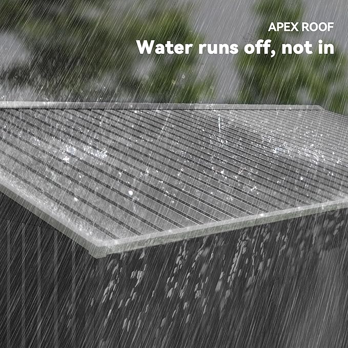 - Spacious Storage Shed: Our outdoor metal shed features plenty of inner storage space so that you can store garden tools, lawn care equipment, and pool supplies. Lockable double doors to secure items (lock is excluded).