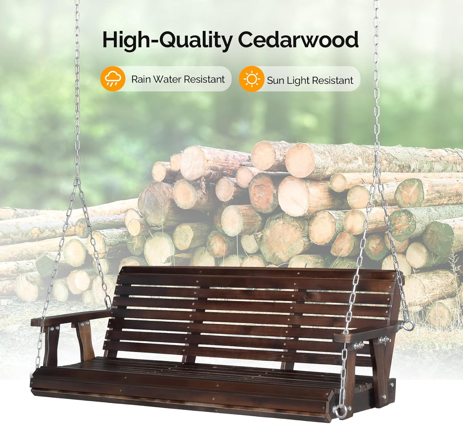 - Ergonomic Design - Our wooden porch swing curves in the knee area to provide you the best sitting experience. It will never hurt your knees or backs. Just sit on it then enjoy your leisure time