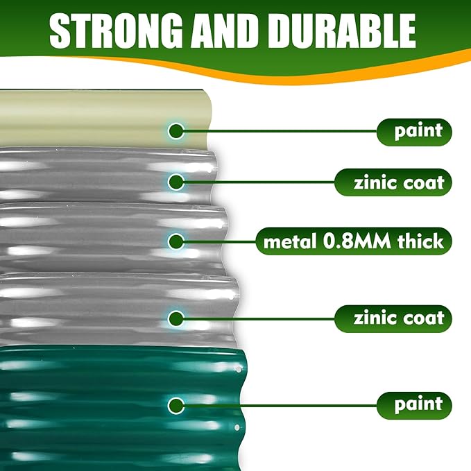- Durable Construction: Made from 0.8mm thick galvanized steel with multi-layer eco-friendly paint coatings for long-lasting use.All galvanized steel boards are locked and spliced with strong screws and butterfly nuts