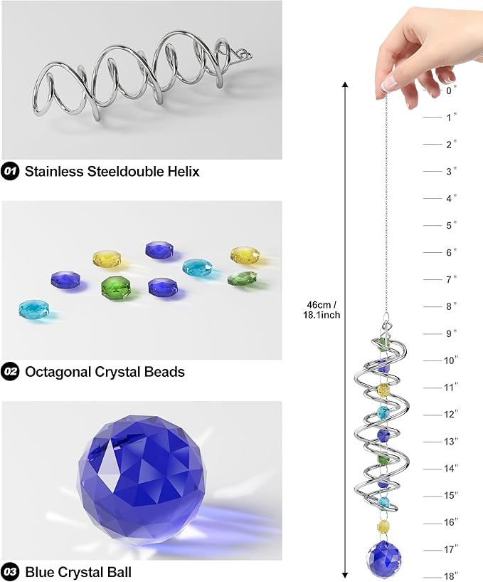 - 【High-Quality Craftsmanship】Made of delicate and durable premium quality crystal and stainless steeldouble helix, our crystal suncatcher are designed to bring out the most beautiful reflections.
