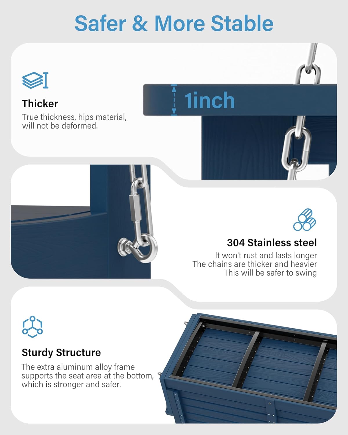 YEFU Hanging Porch Swing Outdoor,2-Seat Patio Swing Bench,All-Weather Swing Chair with Hanging Chains,Look Like Real Wood,for Garden and Courtyard,660LBS Weight Capacity,4FT,Navy Blue