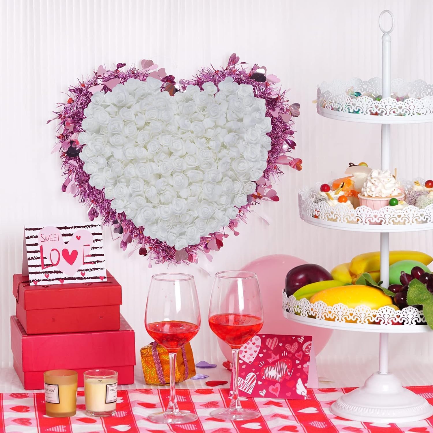 Mini Fake Rose Flower Heads 144pcs Mini Artificial Foam Roses DIY Wedding Flowers Accessories Make Bridal Hair Clips Headbands Dress (Bottom add Gauze) for Valentines Day,Wedding,Bridal Shower (White)
