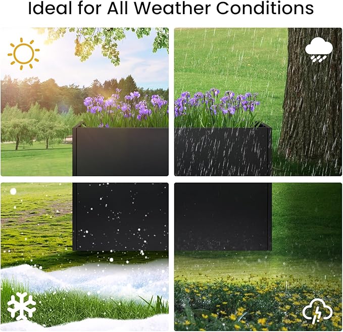 - Weather Resistant: Engineered to endure various weather conditions, this steel planter box boasts excellent resistance to salt spray, UV rays, and freeze-thaw cycles. This outstanding performance ensures durability and longevity, making it suitable for both indoor and outdoor use.