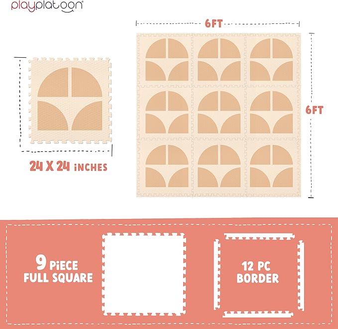 - Jumbo-Sized, Interlocking Foam Play Mat: Measuring a generous 72 x 72 inches, this 9-tile play mat for babies offers ample space for exploration and play, while the interlocking design keeps the tiles securely in place.