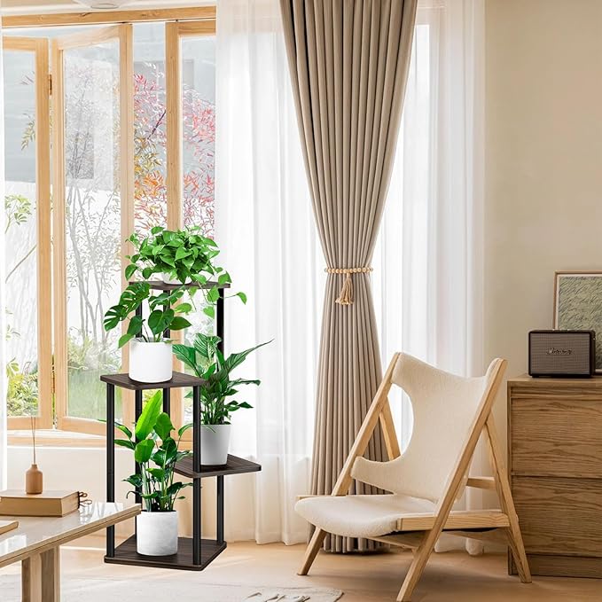 - 【Elegant Decoration & Space Saver】Minimalist style, wood grain board with metal frame, Vintage Plants Stands Rack match well with your home decor in living room, corner, balcony, hallway, garden, patios etc.