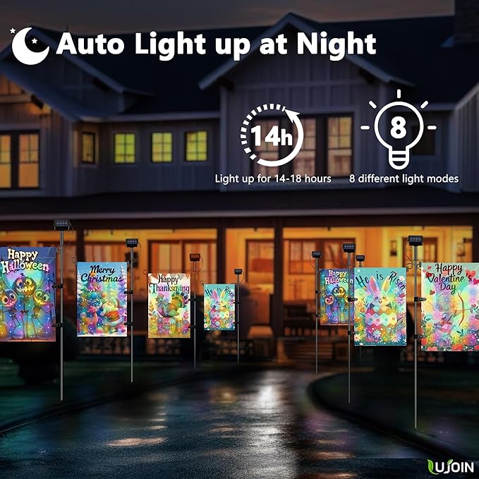 DIY Solar Garden Flag Stand with 5 Holiday Flags, Universal LED Board for DIY a Lighted 12"x18" Flag, Including Valentines Day, Easter Day, Halloween, Thanksgiving Day & Christmas Flags