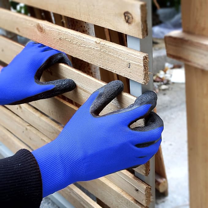 Evridwear Crinkle Latex Rubber Hand Coated Safety Work Gloves for Men Women General Multi Use Construction Warehouse Gardening Assembly Landscaping (M-Size) Blue 120 Pairs Pack