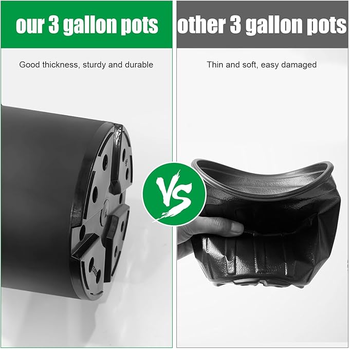 - 10 Inch Plastic Pots (12 Pack): 10-inch plastic nursery pots with a 3-gallon capacity(can hold 3 gallons of compacted loose soil or 2 gallons of liquid); includes 12 pots for handling multiple planting projects at once