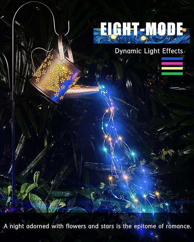 - Upgraded Colorful Solar Watering Can: Elevate your outdoor ambiance with our multicolored Owl-shaped hanging solar lantern featuring 8 light modes and 4 color LED strings, casting a starry glow as if pouring out a constellation. The warm yellow light filters through the exquisite cut-out design, creating a cozy and artistic atmosphere for memorable nights with family and friends