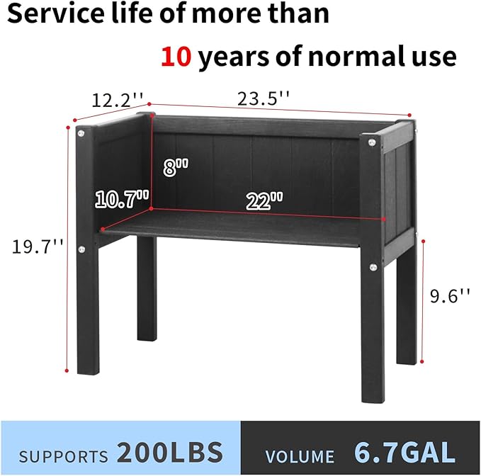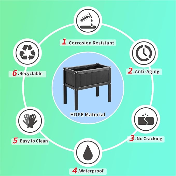- ๐๐๐๐๐ฉ๐ฎ๏ผThis elevated garden bed does not require food-grade coatings. It is made from food-grade material (HDPE lumber) with the color of the board itself, environmentally friendly, and recyclable for secondary use