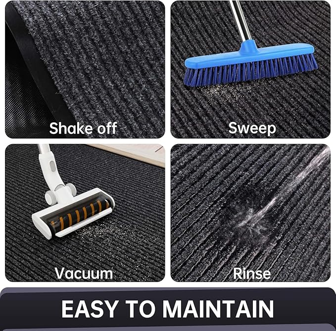 - EASY TO CLEAN: Simply shake, sweep, or vacuum the entrance floor mats to remove dust and debris. For a deeper clean, rinse with a hose and air dry—front door mats will quickly returns to its original condition.
