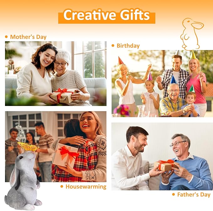 - 【Weatherproof & Anti-UV】Each of our rabbit statues is carefully hand-painted and finished with a UV-resistant coating, ensuring long-lasting vibrancy even in the toughest elements. You don't have to worry about the bunny yard decor being damaged by rain, snow or UV rays