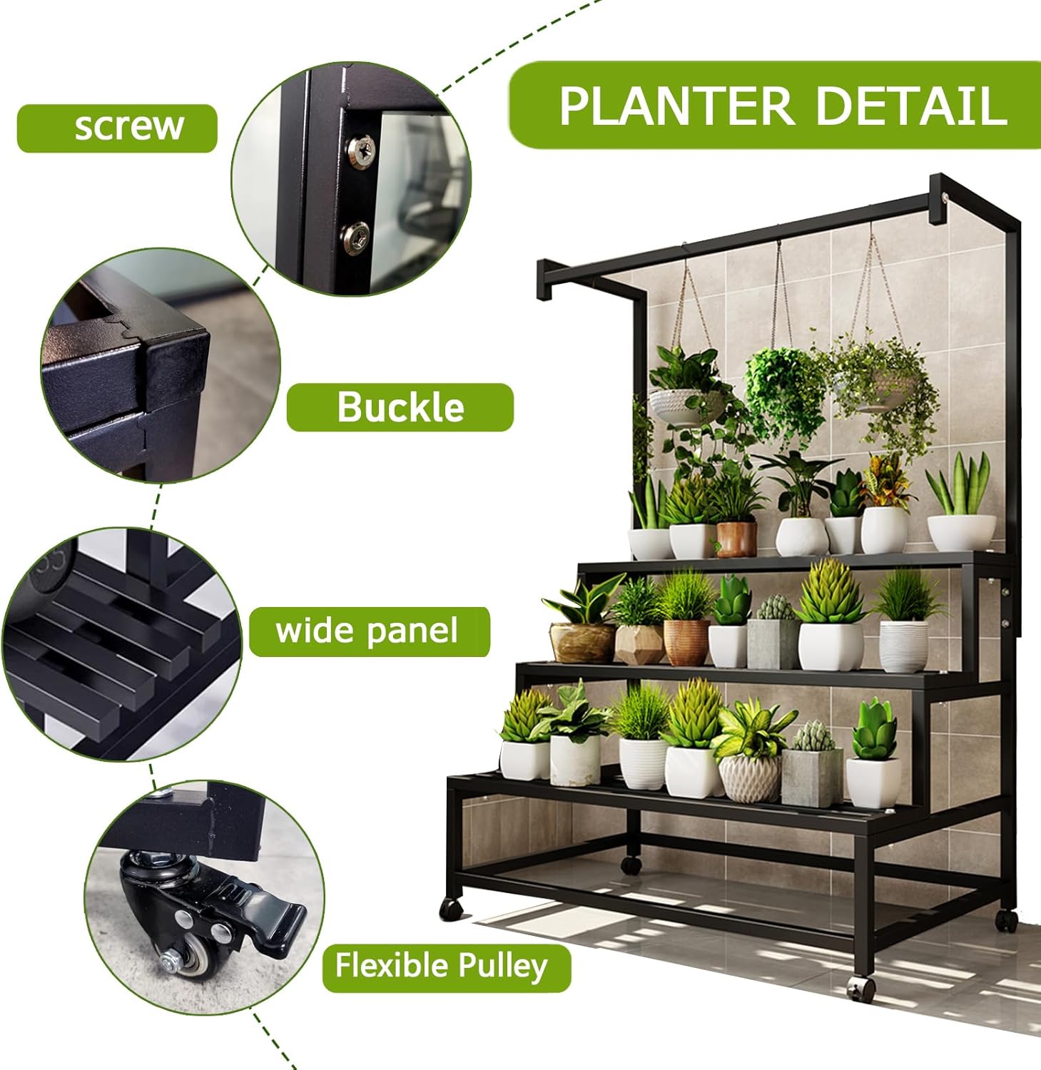 - With hanging design: This multi-tier plant stand comes with a hanging rod, which adds reasonable space for hanging basket plants, also can hang your garden tools, more convenient to use, differentiate it from ordinary plant stands.