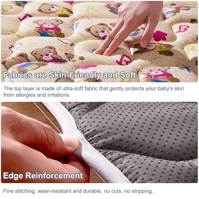 - Easy to clean: No worries at all about mats stained with urine, milk, juice and other stains, our mats are machine washable and can be washed in a large washing machine and dried at low temperatures, which is very convenient, especially for busy parents.