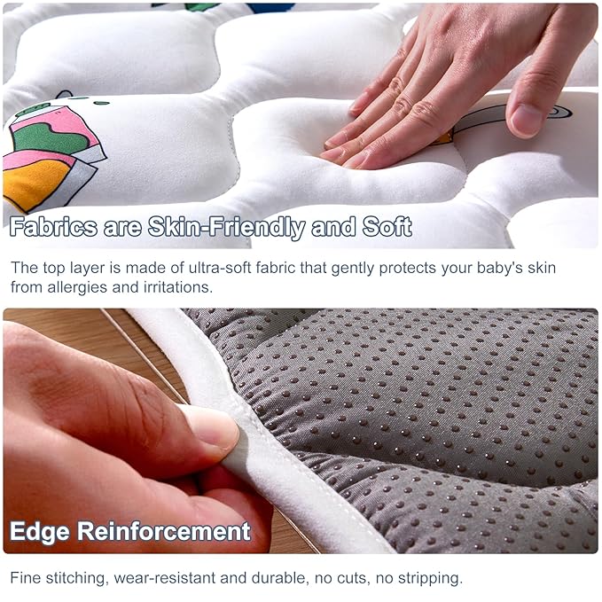 - Easy to clean: No worries at all about mats stained with urine, milk, juice and other stains, our mats are machine washable and can be washed in a large washing machine and dried at low temperatures, which is very convenient, especially for busy parents.