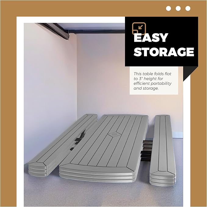 OEF Furnishings Heavy Duty Blow Molded Folding Picnic Table- Light Speckled Grey, Black Frame