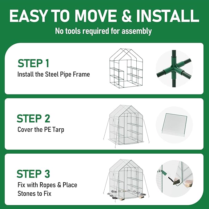 - Support: If you encounter any issues with the Greenhouse you receive or experience any problems during use, please contact us. We will do our best to resolve the issues for you
