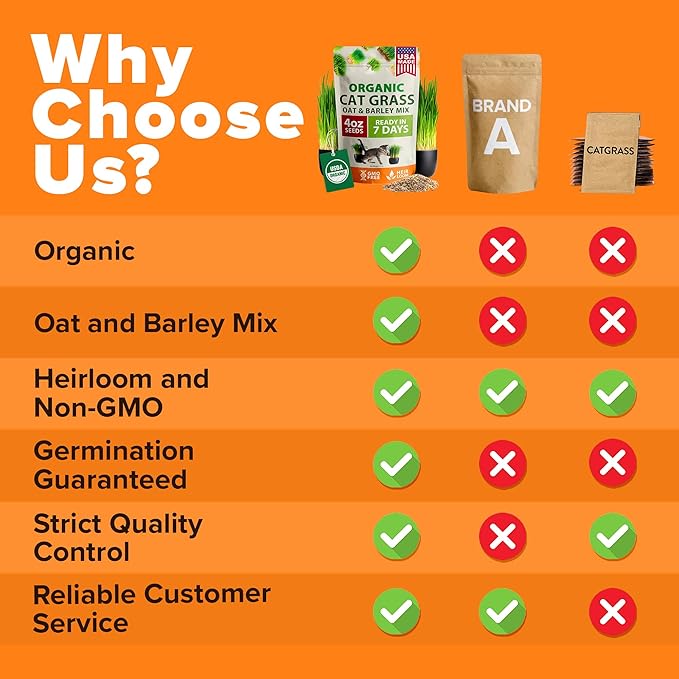 - PREMIUM ORGANIC CAT GRASS OAT BARLEY MIX. Specially selected heirloom oat and barley seeds grown organically in the USA.