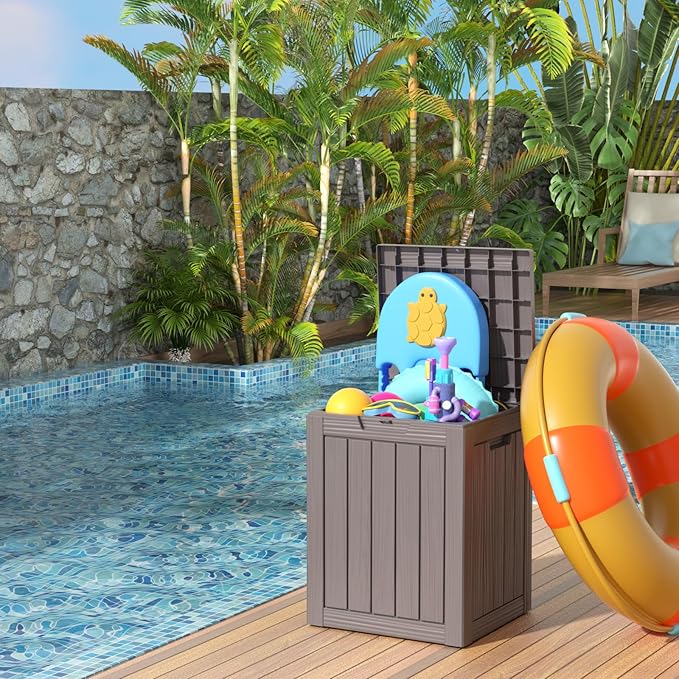 - TRANSFORM YOUR SPACE: Whether used indoors as a laundry deck storage box solution or outdoor storage for patio items like cushions, garden tools, and sports gear, this patio outdoor storage box excels. Its multi-functional design makes it suitable as a package delivery box, package box for porch, side table, patio seat, storage bench, or footstool