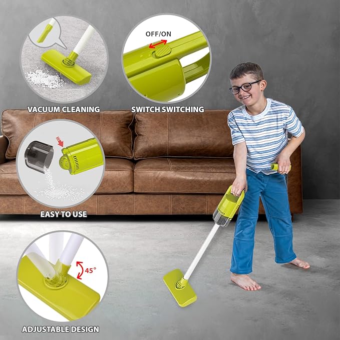 - 【Kids Cleaning Toys】Realistic kids cleaning toys set including a realistic and fully functional vacuum cleaner, broom, dustpan, brush, and more. Completely 29 piece clean up set can actually clean your kid's room for hours of pretend play housekeeping.