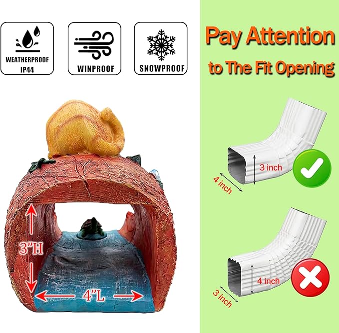 - 🏡【Perfect Size of Animal Resin Statu】Our orange cat decor statue for garden rain gutter downspout measures 8.47"L*6.3"W*8.47"H.It is fitting rectangular downspouts up to 3"x 4".Simply connect the downspout,the extension splash block will fit your garden downspout tightly and perform nicely.