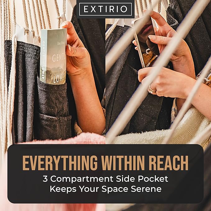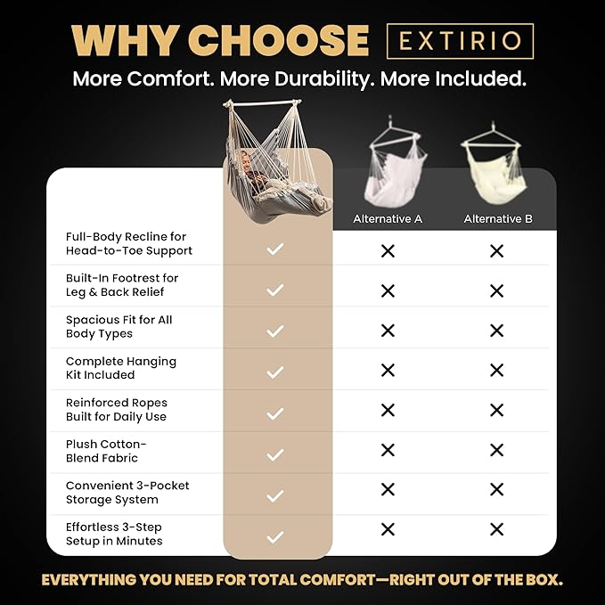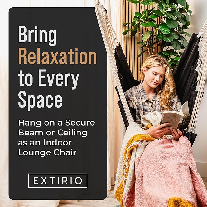 - ๐๐ฉ๐๐๐ข๐จ๐ฎ๐ฌ, ๐ ๐ฎ๐ฅ๐ฅ-๐๐จ๐๐ฒ ๐๐จ๐ฆ๐๐จ๐ซ๐ญ โ Unwind fully in our hammock chair with footrest, made for deep relaxation and full-body support. With a built-in foot rest and breathable cotton blend, itโs the perfect hanging chair for bedroom, patio, or porchโand the ideal indoor swing for adults seeking a cozy reading nook or napping spot.