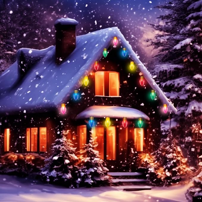 - Weatherproof Christmas Yard Lights: C7 LED large christmas lights are made of plastic, tough for all kinds of weather, commercial-strength casing withstands extreme temperatures and wet weather. You can use zip ties or cup hooks to hang the string lights where you want to hang. Keep the string lights plug as dry as possible