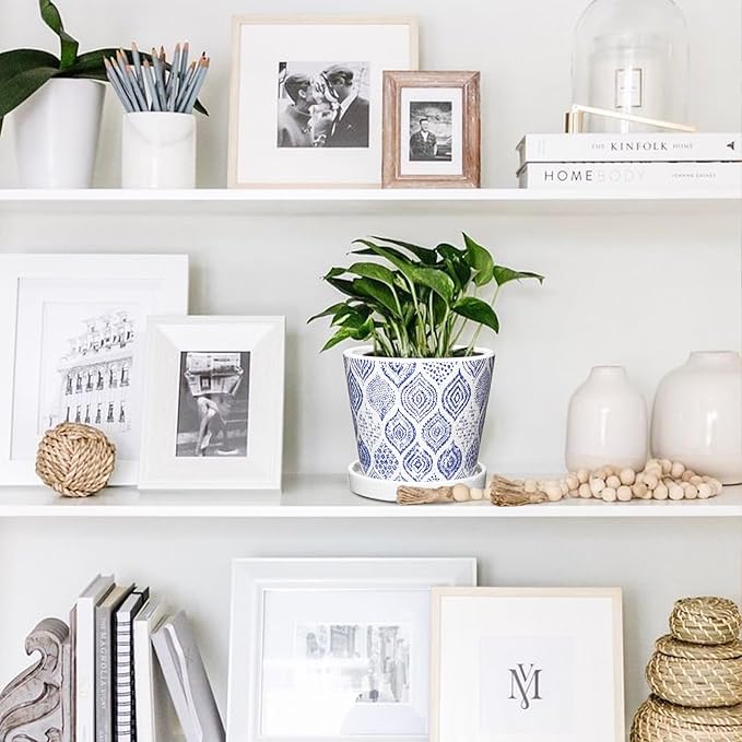 - [Ceramic Plant Pot]-The surface of the blue and white planter features exquisite floral and geometric arrangement patterns and irregular crackle effects, adding delicacy and uniqueness. The stunning vintage design complements any home or office decor and provides an attractive visual display for your plants, making them stand out