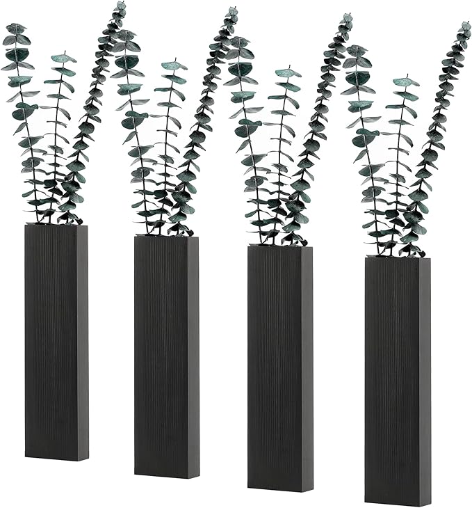 Wood Wall Planter 4 Pack Wall Decor for Artificial Flower Plants Wooden Plants Holders Wall Plant Pocket Vase Hanging for Living Room Bedroom Dining Room Bathroom Indoor Decroation (Black)