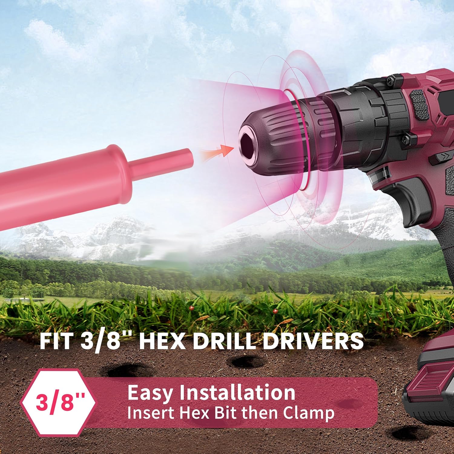 - Durable Construction: Made from heavy-duty steel, this garden auger bit is built to withstand tough soil conditions without bending or breaking. The pink coating adds a layer of rust resistance and style.