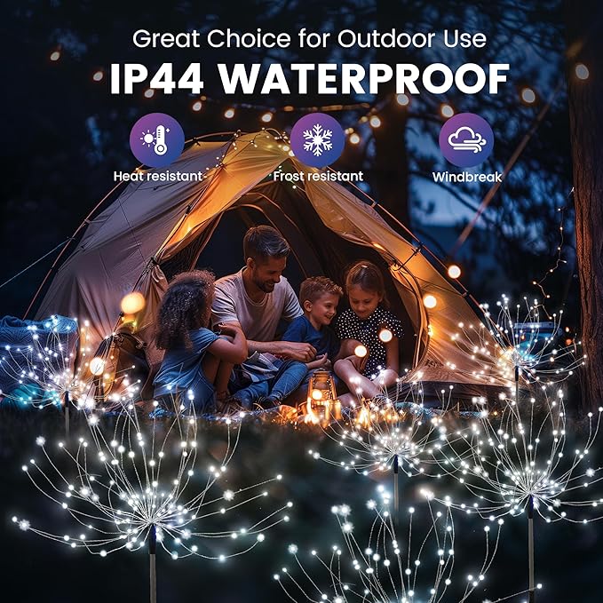 - Garden Decor, Festival Atmosphere Maker: Featuring solar garden decor lights transmitted through fiber optics, outdoor solar lights create a mesmerizing fireworks effect. Perfect for setting the mood for parties and holidays, it adds a touch of magic to any celebration