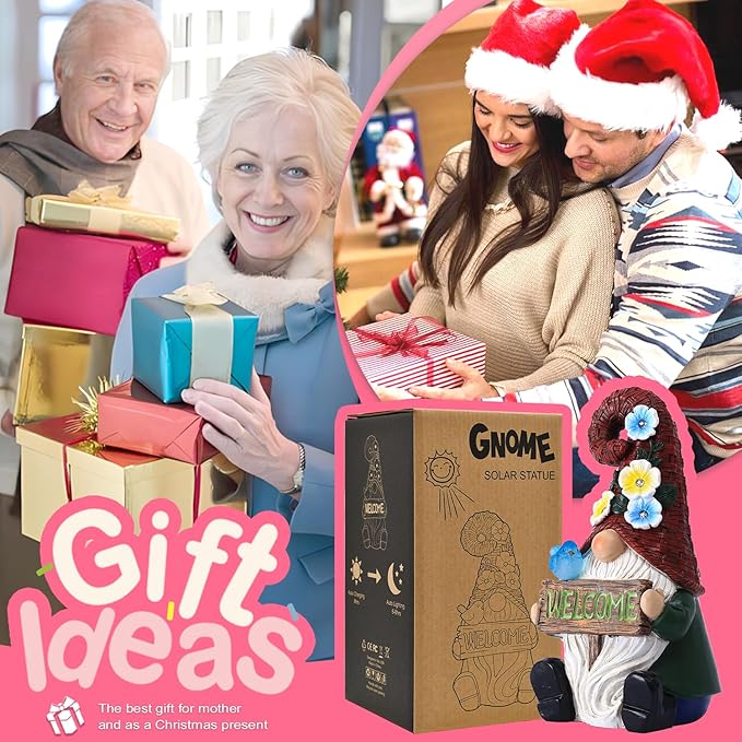 - 【Perfect Gifts for Women, Moms & Garden Enthusiasts】: Surprise your loved ones who enjoy gardening or appreciate unique decor with this exquisite gnome solar statue, making it an ideal gift for birthdays, Mother's Day, or housewarmings
