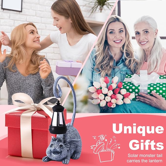Baby Dragon Statue with Solar Lantern - Dragon Garden Decor and Housewarming Gifts for Mom, Women - Outdoor Dragon Gifts for Yard