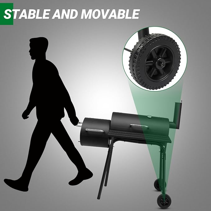 Outvita Outdoor BBQ Charcoal Grill, Portable Camping Grill for 6-10 People with Offset Smoker & Wheels for Patio Backyard Picnic