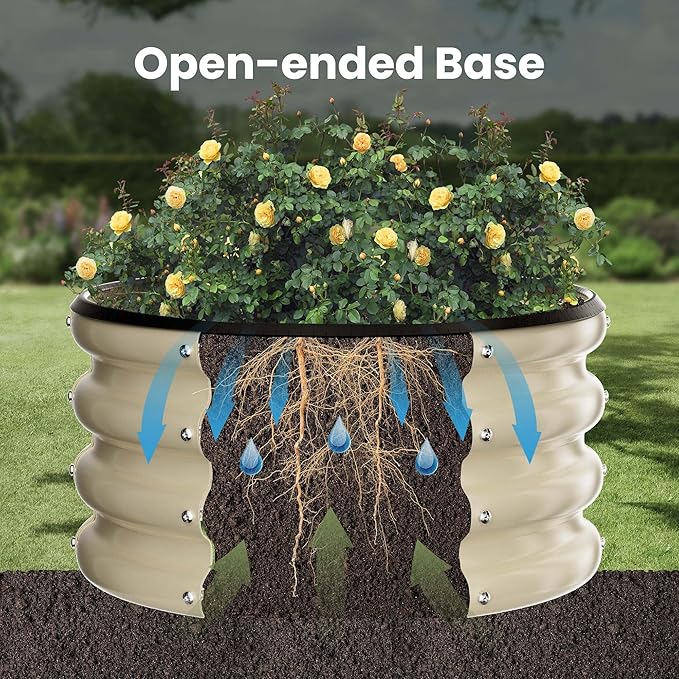 - 【Enhance Garden Aesthetics】 The stable and beautiful design of the round galvanized raised garden bed will enhance the appearance of any garden. For any questions or concerns, please don't hesitate to contact us through Amazon.