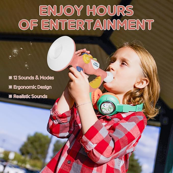 - PERFECT GIFT FOR KIDS - Our baby toy trumpet, where every note sings with clarity and charm, thanks to its premium high-fidelity speakers. From deep bass to sparkling treble and everything in between, the sound is simply mesmerizing. Perfect for birthdays or Children's Day, this toy trumpet brings the magic of music to young hearts, creating unforgettable moments of joy and wonder.