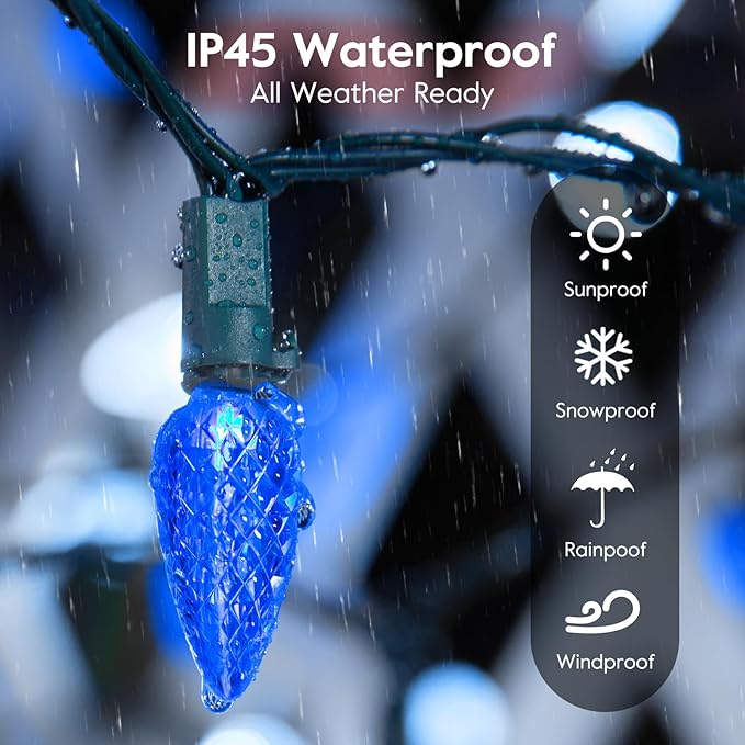 - 【 8 Lighting Modes 】- There are 8 different modes for the C6 Christmas string lights, including waves, sequential, slow glow, flashing, slow fade, twinkle, and combination, as well as standard on and off. It can be controlled by pressing the button on the battery box. Ideal for your everyday decor as well as holiday decoration.