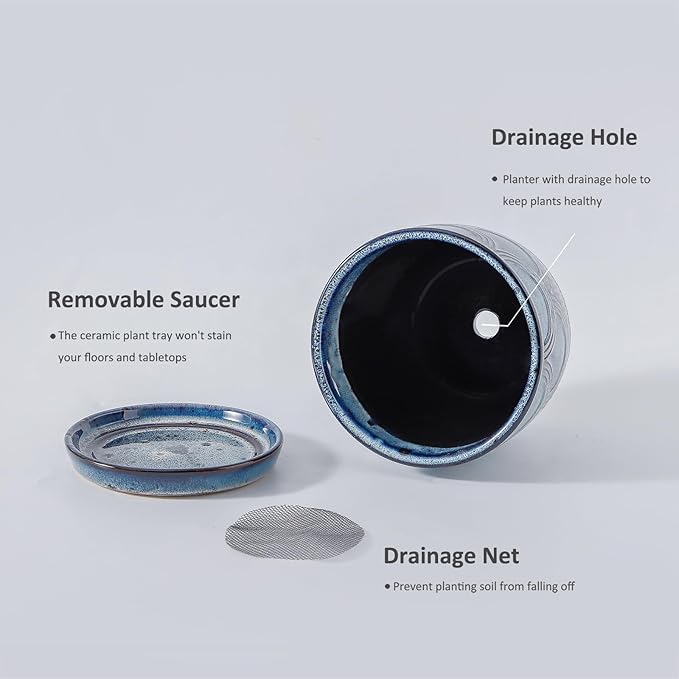 - ๐๐ฒ๐ฐ๐ผ๐ฟ๐ฎ๐๐ถ๐๐ฒ ๐ฝ๐น๐ฎ๐ป๐ ๐ฝ๐ผ๐๐โThe Reactive Glaze Blue flower pots feature its special stylish appearance, perfect for decorating your home, living room, windowsill, office, desktop, courtyard, patio, etc. The planters for indoor plants are exclusive designs that adds a touch of elegance to any room, with colors that match any decorative style.