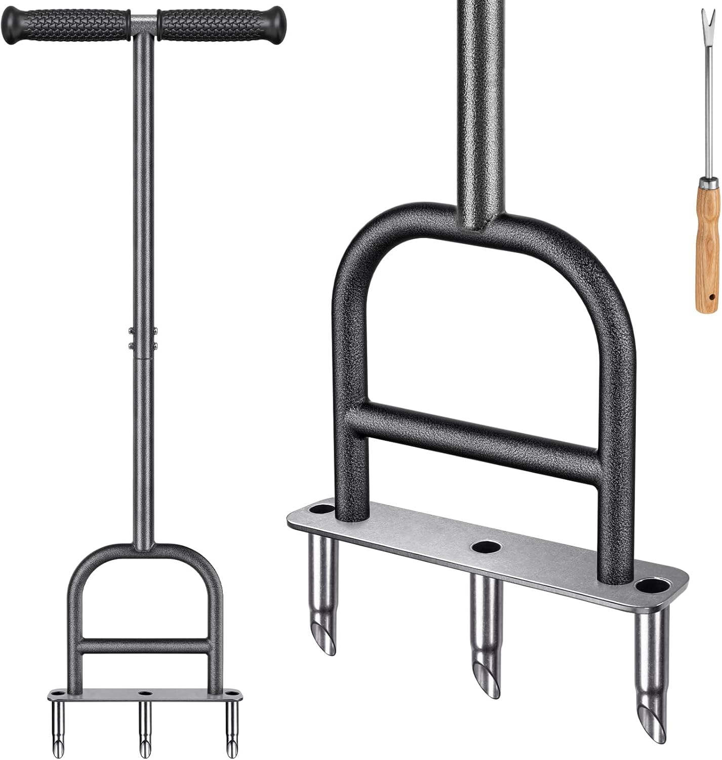 - 3 Stainless Steel Coring Plugs: Our 3 core aerator plugs uses stainless steel material that will not rust or bend out of shape. Additionally, our rod is made from high-quality solid steel with a black powder coating on the surface to ensure long-term use of the tool.