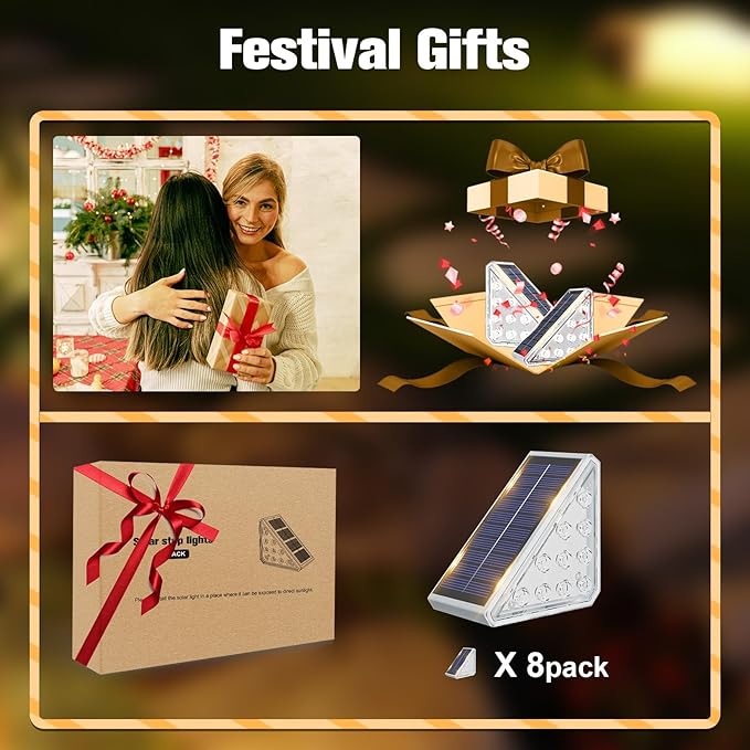 - Stylish & Functional: Illuminate your steps with our step lights outdoor, designed to cast a bright beam that ensures every inch of your stairs is clearly visible, reducing the risk of accidents or falls. These solar lights for steps outside also elevate the aesthetic appeal of your patio, enhancing the overall appearance of your outdoor space. Don’t settle for ordinary lighting—upgrade to our solar stair lights for the perfect blend of style and functionality.