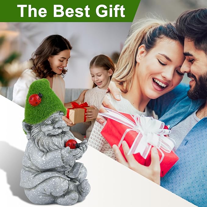 - Energy-saving and convenient: This dwarf ladybird statue solar lights for outside garden are equipped with a solar panel that automatically stores solar energy during the day and automatically glows at night. It requires no electricity or battery replacement, ensuring durability and uniqueness for your outdoor space.